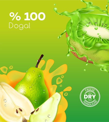 Besin değeri ve aroma maksimum seviyede korunur. Dondurarak kurutma yöntemiyle vitamin, lif ve doğal lezzetleri ilk günkü gibi saklarız.