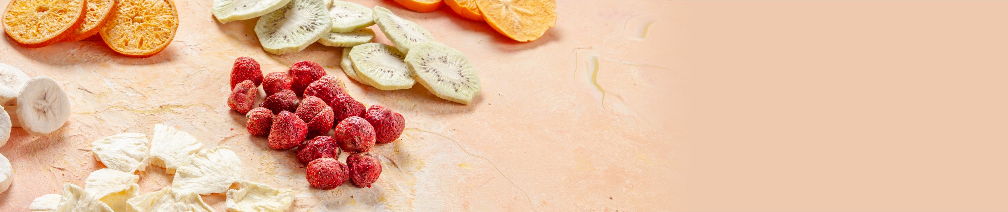 Tazeliğini ve besin değerini koruyan, katkı maddesi içermeyen %100 doğal meyvelerimizle tanışın. Birçok meyve çeşidini freeze dried yöntemiyle kurutarak sağlıklı atıştırmalıklara ve pratik meyve tozlarına dönüştürüyoruz. Hafif, lezzetli ve her an tüketilmeye hazır.